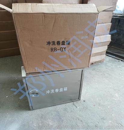 RB-QX型不锈钢冲洗卷盘箱门框为不锈钢结构。箱内由阀门、冲洗喷头、胶管、卷盘等组成。