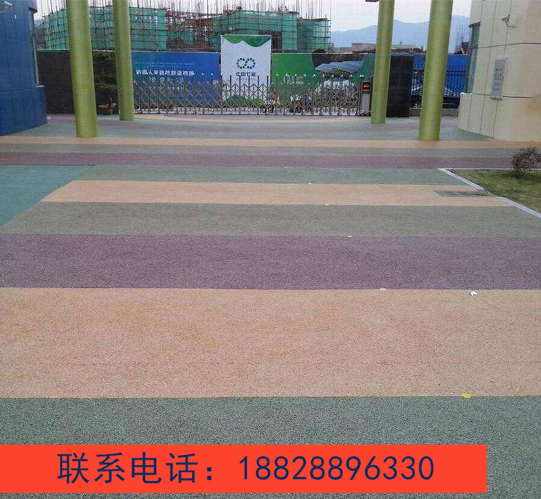 胶筑透水石地面是由改性高分子树脂为胶结材料,将天然彩石、抛光色石、玻璃、水晶石、人造再生骨料等牢固地粘接在一起,铺设在混凝土、透水混凝土、沥青或级配砂石基层上的生态景观地面铺设材料,具有高效透水、自然美观、色彩多样、经久耐用等特点。可用于透水性景观道路、车型或人行道、公园和广场等场所,也可应用到室内场所。典型的现场铺装型整体透水路面有透水混凝土、露骨料透水混凝土和胶筑透水石三种。胶筑透水石是用透明的耐候性好的有机树脂把彩石粘结起来并铺设到地面上,完全改变了人们对地面景观效果的期望值,石子就像随意自然地散铺在地上一样,一粒一粒清晰可见,但汽车行驶或行人行走在上面的时候,天然石子又不会散落,下雨时,地面雨水还能够通过石子间的缝隙渗透到地下,还原地下水。