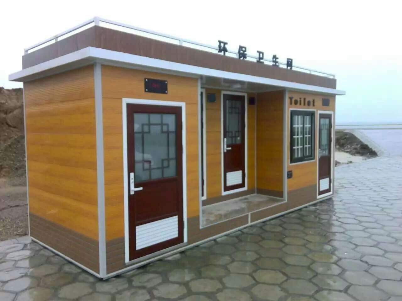 水冲移动厕所是以槽钢和方钢为主体结构,、产品美观大方、并且不生锈、不腐蚀、墙板二面光滑、易保洁、符合卫生要求、重量轻以及可随意设置移动到位等特点。配有独立便器、照明及通风系统、手纸盒、衣帽钩、不锈钢扶手、洗手台、梳妆镜等、并且配有上下水箱(清水箱和污水箱),并在背面设有抽粪口和排污口。