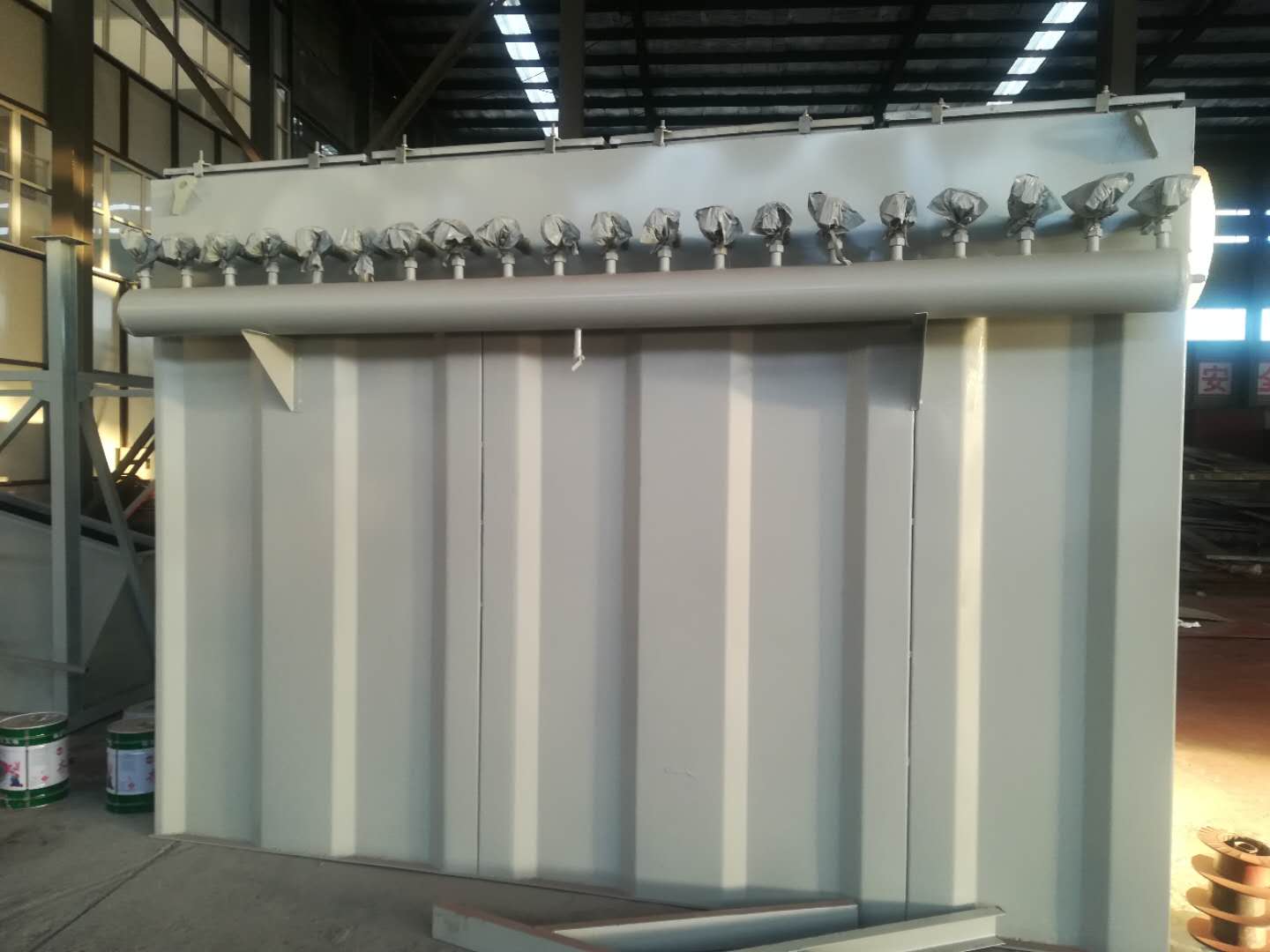 1、箱体:包括袋室、净气室、多孔板、滤袋、滤袋骨架、检修门、箱体设计耐压5000Pa。