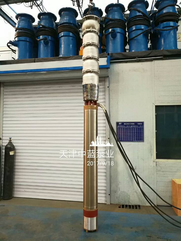 不锈钢深井泵,天津哪里有卖高质量的深井泵,天津中蓝泵业以生产深井泵为主营方向,产品很好的诠释其排水的用途,主要销售往等地区。依靠完善、机制健全、不断强化的服务理念,为了方便广大市政工程、经销商,我司尽心尽力提供完善的售#后#服务,也因此受到需求客户一致的好评与赞誉。天津中蓝泵业产品质量可靠,价格公道,每一个出库的深井泵都要经过严格质量检测,达到质量标准才可以出厂。高标准,精细化,零缺陷,是企业对职工的基本要求。当市政工程、经销商与我公司签订订单后,您需要注意我司指定的付款方式为现金支付,临时有变动的情况下,我们会及时与您取得联系。经过几年的快速发展,以贸易型为主,专业从事制造深井泵的天津中蓝泵业如今已经跻身泵行业的前沿,深井泵以可靠的品质赢得了广大市政工程、经销商的青睐,同时也获得不错的口碑。如有需要,欢迎致电联系了解详情。不锈钢深井泵,一、传统的QJ系列泵虽然可以做到高扬程,但是轴向力大,运行不稳定,一般寿命是2~3个月。如果是在矿井使用,很不耐用,而且外观细长,无论是从安装、运输等各方面来看都不方便。原因:大流量高扬程潜水泵之所以在扬程上受限,主要原因是不能克服轴向力,就是说电机的止推轴承不能承受更大的推力,所以扬程受到限值。二、更新参数:这种泵不产生轴向力,流量可做到50m3/h至500m3/h同时扬程可以做到300米、400米、500米、600米、700米、800米、900米、1000米,效率70%。三、外观:泵体外径460mm,水泵高度均小于1.3米至1.8米之间,因为消除了轴向力固性能稳定,噪音低寿命长。且非常适合矿用,安装、运输都很方便。四、主要用途1.粗、短,流量大、扬程高,没有轴向力,运输方便。适合矿井2.深井、矿中提取地下水,可用于金矿、银矿、铁矿、煤矿抢险、工地排水使用。3.本产品有小流量高扬程潜水泵:如:30方、1000米扬程,功率为140KW。既节能,又能解决矿井下排水困难的难题,还适用于矿井生活饮用提水。4.电机、水泵—体,潜入水中运行,无火星、防爆,安全可靠。5.对井管、矿井无特殊要求,对输水管只要能承受相应压力即可。6.安装使用维护方便简单,占地面积小,不需建造泵房。不锈钢深井泵,天津哪里有卖高质量的深井泵,天津中蓝泵业是自主从事深井泵的研发、设计、生产及销售的贸易型企业,致力于为市场提供深井泵的多方位服务。公司专门引进了先进的流水线生产装配和先进技术的检验检测设备,引入了行业专业的技术和管理人才。在多年的泵领域实践中,积累了丰富的实际操作经。我们公司的地址在天津市津南区双桥河工业园欣发路8-1号,欢迎广大市政工程、经销商前来参观指导。欢迎电话来访,我们有专业人员为您介绍不锈钢深井泵,150QJ不锈钢潜水泵,耐腐蚀深井泵的相关信息