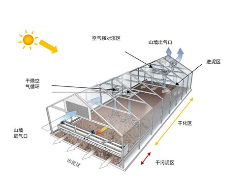 太阳能污泥干化发电系统是污泥处理工艺的一种创新方法, 是通过太阳能温室干化处理, 使干化后的污泥实现资源利用。该工艺可以与不同的污泥处置途径相结合,从而达到降低污泥处置费用, 提高处置手段的灵活性。