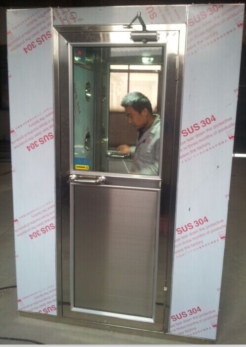 (3)人员进入风淋通道时先调好风淋时间,轻轻触按风淋室面板的电源按键,接下来按照明和风机按键,进入风淋通道将风淋通道门关闭,进行吹淋。
