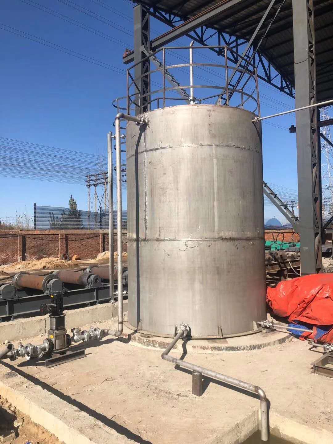 设置氨水储罐一座,材质由304不锈钢制作,壁厚5-10mm(根据罐体大小设计),总储存量按照所有锅炉满载负荷下不小于7天的总消耗量。氨水储罐设有梯子、入孔、溶液入口、溶液出口、液位表、呼吸阀、取样口和排放口等,氨逃逸检测设备,氨水储罐设置防事故喷淋装置。