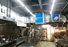 1 .厨房油烟在鼓风机电机的诱惑力下进到厨房油烟转化器,在其中大的厨房油烟滴、油渍颗粒在外置防火安全均流板上,避免因厨房油烟溫度过高造成的厨房油烟着火.