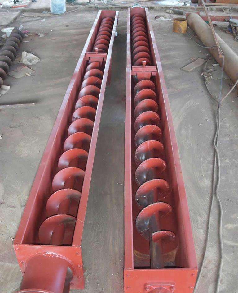 U型螺旋输送机俗称蛟龙,广泛用于建材,人造板、煤炭、电力、石油、化工、纺织、矿山、冶金、化肥、粮油、环保等生产行业。螺旋输送机(U型螺旋输送机)特点是结构简单,横截面积小,密封性能好,操作安全方便,制造成本低,但螺旋输送机使物料易破碎,能耗较大。螺旋输送机按配置形式有水平.倾斜.垂直.等组含形式,并可与其他输送设备或工作装置配合使用,完成集运.分送.搅拌.混合.脱水.定量配料.卸载.堆垛等作业从输送物料位移方向的角度划分,螺旋输送机分为水平式螺旋输送机和垂直式螺旋输送机两大类型,主要用于对各种粉状、颗粒状和小块状等松散物料的水平输送和垂直提升,该螺旋输送机不适宜输送易变质、粘性大、易结块或高温、怕压、有较大腐蚀性的特殊物料。