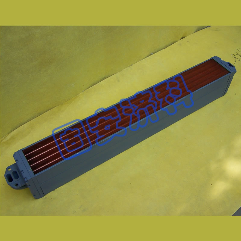 机车散热器,涉及一种热交换器。所要解决的技术问题是,提供一种以装有翅片的管道作为水流通道的机车散热器。解决其技术问题的技术方案,包含水流通道、风冷气流通道和集气管;水流通道和风冷气流通道包含上夹板、下夹板、左边板、右边板和翅片,上夹板与下夹板之间保持一定距离,形成水流气流通道,左边板装在上夹板和下夹板左端,右边板装在上夹板和下夹板右端,使水流气流通道形成封闭通道,翅片装在上夹板与下夹板之间,使通过其间的水流气流形成平行流;多组水流通道与多组风冷气流通道相互垂直交错叠放;集气管装在风冷气流通道两端。机车散热器有益效果是,与已有技术相比,结构简单,成本低,机车散热器中通过的水流及风冷气流形成平行流,有利节能。