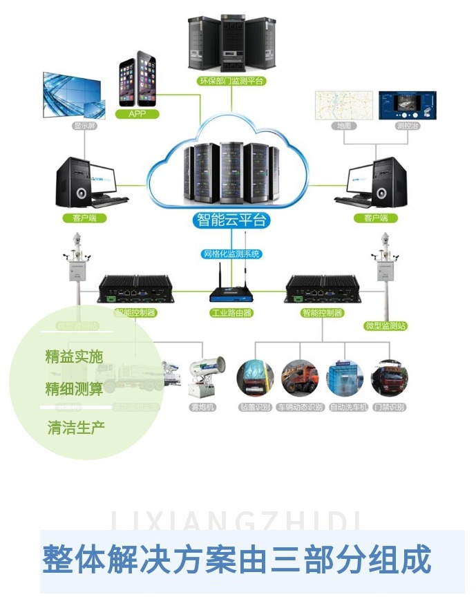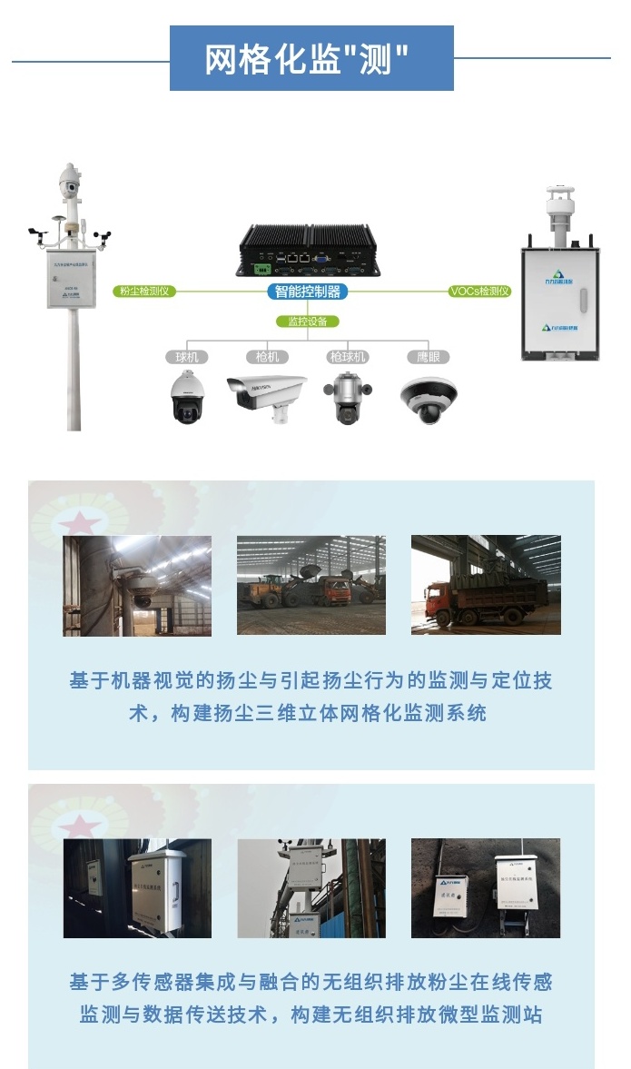 九九智能环保工矿企业超低排放智能解决方案。该解决方案由九九智能环保自主研发的智能监测设备、智能治理设备、智能云平台组合而成,采用云计算+边缘计算+设备终端结构模式,根据工业企业粉尘排放规律和各项除尘技术特点,融合了检测传感、机器智能识别、云计算、通信物联以及大数据分析等多项前沿科技,通过对工业企业无组织粉尘排放的网格化监测、智能化控制、精准化治理,形成了一套简单易操作、空气治理效果以数据为参考的整体解决方案,可广泛应用于钢铁、焦化、电力、建材、矿山、散货码头、建筑、垃圾消纳场等行业的无组织排放智能管控和治理。