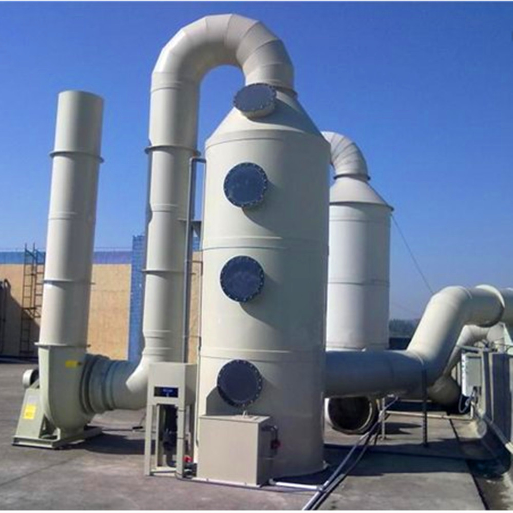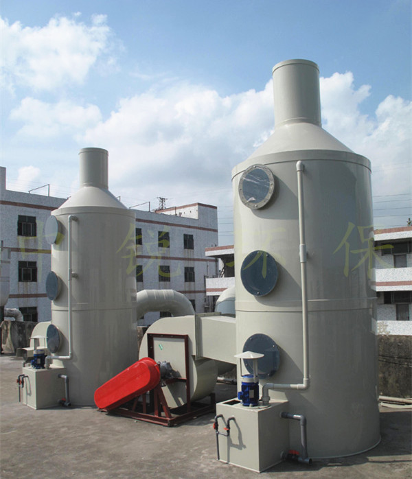 喷淋塔又名洗涤塔,水洗塔,是气液发生装置。废气与液体充分接触,利用其在水中的溶解度或者利用化学反应,加药来降低其浓度,从而成为符合国家排放标准的洁净气体。主要用来处理无机废气,如硫酸酸雾,氯化氢气体,氮的不同价态氧化物气体,即NOx,粉尘废气等。