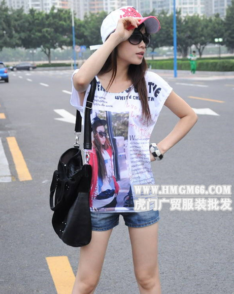 - 产品型号:虎门长款短袖T恤批发烫印T恤批发广州服装批发进货网韩版长款长