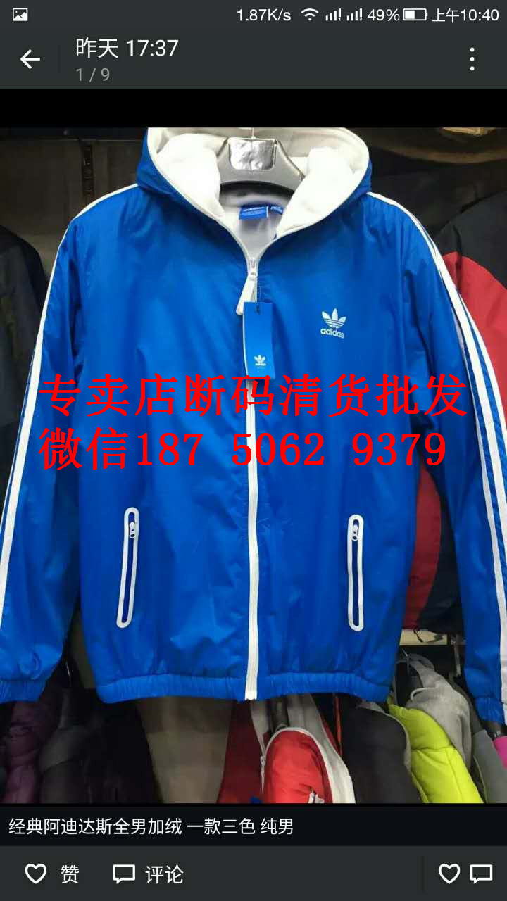 阿迪耐克厂家尾货服装棉衣批发,厂家一手货源,品牌多品种全,一年四季不间断供货,货源稳定。