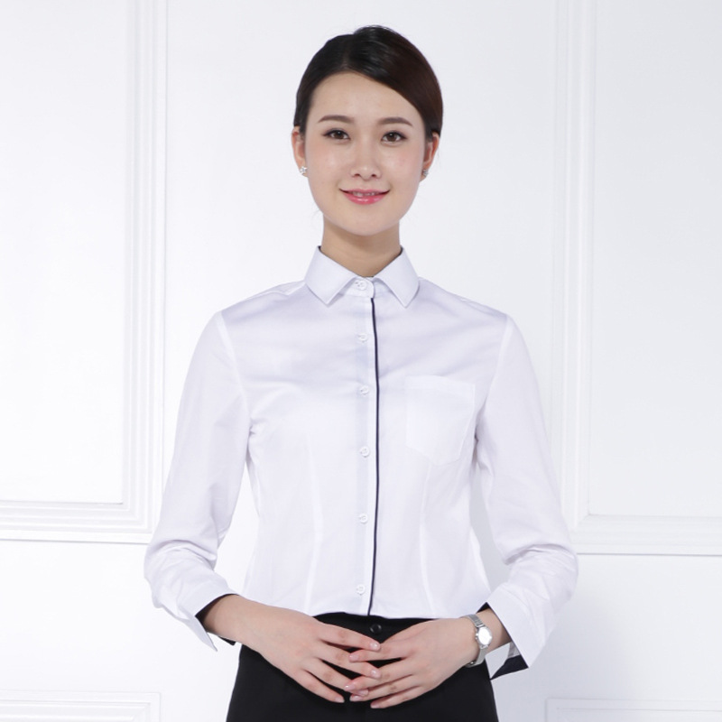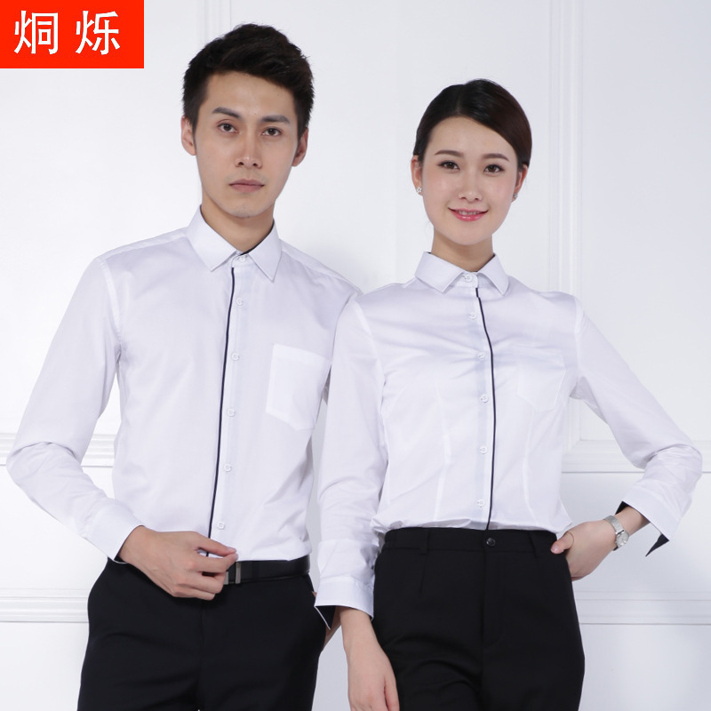 株洲职业装批发男女同款长袖衬衫修身商务白色衬衫