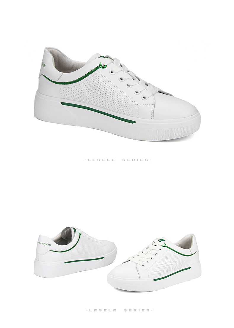 新款女鞋秋小白鞋女 百搭低跟牛皮系带休闲鞋