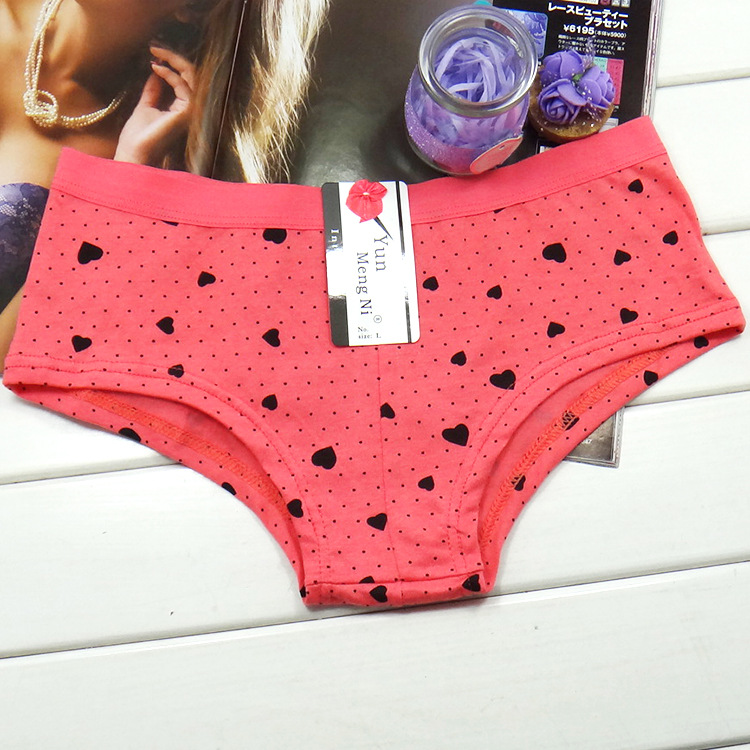 云梦妮外贸棉女士内裤时尚爱心印花女式三角裤厂家货源