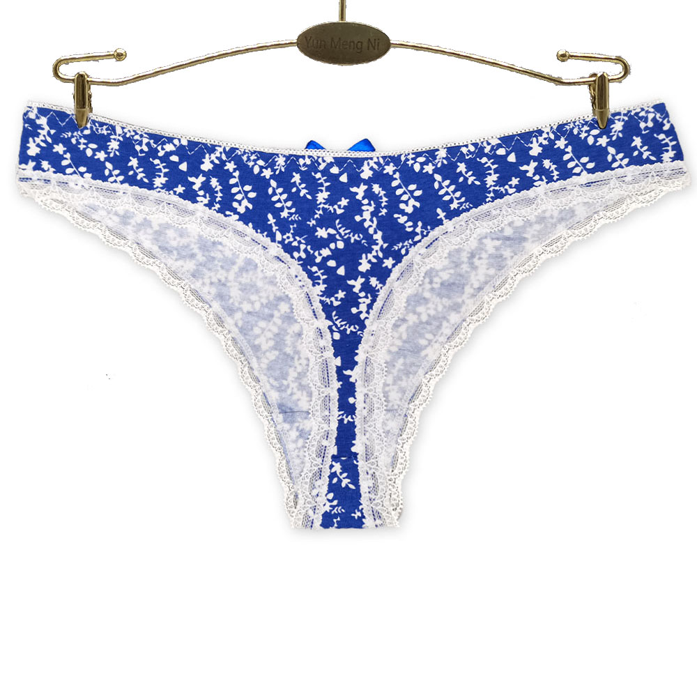 云梦妮南美性感外贸女士丁字裤棉女式印花蕾丝边丁字裤