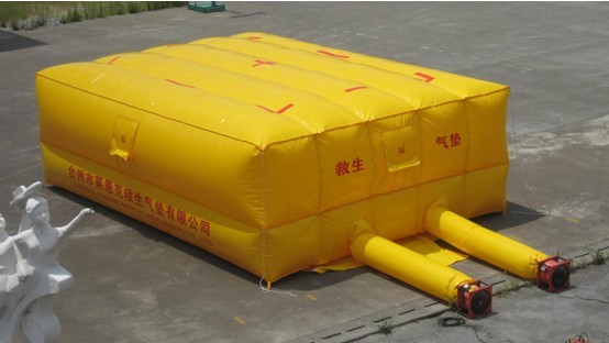 2.本公司生产的救生充气垫面料选用特制的防火布,由坚韧的乙烯基纤维做内层,外涂进口防火阻燃剂打磨组合制成。抗拉撕裂强度高,具有阻燃防火、防水、防腐蚀、耐酸碱、耐磨损、耐老化、耐油、耐寒、耐热等性能,可任意折叠。