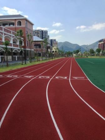 2、透气型:本产品由聚氨酯粘合剂按比例混合而成,有专业施工机械铺设,经机械铺装的跑道平整度佳,成型后的跑道内含多孔,使雨后不积水,雨停即可使用,提高使用性能。