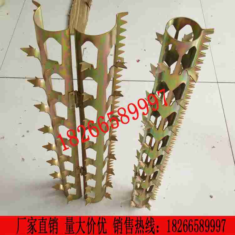 防爬刺又叫防盗刺、刺网、狼牙棒等。如今小偷越来越多,各类入室偷盗案件时有发生,其中不少住宅的下水道管和燃气管都装在外墙上,而且紧贴阳台、窗户,给小偷提供了便利。人防是基础,技防才是根本,不能单单依靠物管、保安及公安民警,还要增加设施上的改进,为此我公司研发出一种叫防盗刺的产品。可以有效的防止小偷利用管道、围墙栏杆、门窗入室行窃,预防偷盗案件的发生。防盗刺主要用于多层、主层下水管、燃气管道、窗台、阳台、围墙、空调等防盗装置。