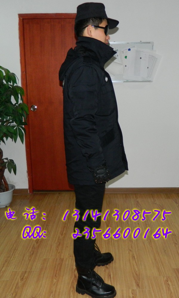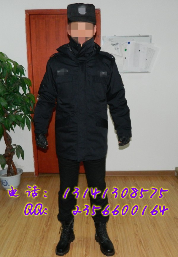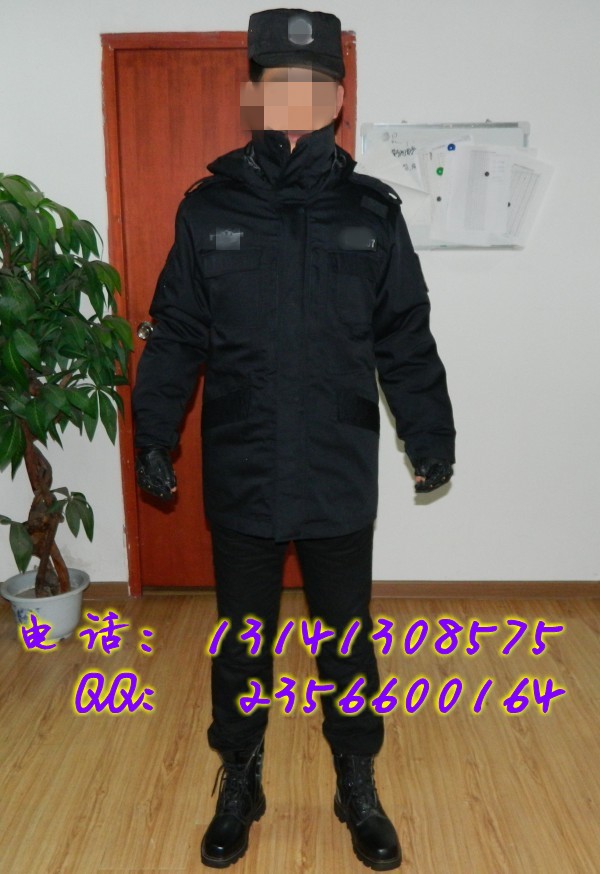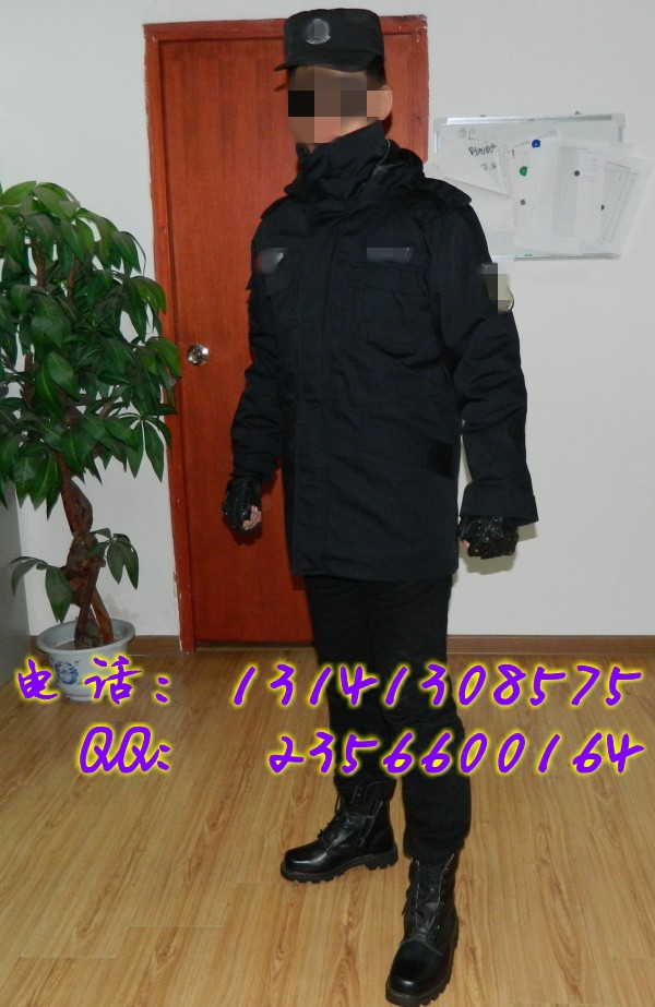 公安部99式警服工艺标准和技术要求,采用国际通用的元青色,特征明显,经过防尘、抗静电、防褪色特种工艺加工,特殊的处理还避免了作战时服装摩擦产生声响,具有更好的隐蔽性,较强的抗撕拉、耐磨性,可适应高强度训练及恶劣环境作战;作战服的多个装备兜及隐藏兜,可使我们携带多种装备;配有可突出特警气势的臂章及胸标,并且根据作战环境的需要,臂章可随时摘卸。内穿式的肘、膝部防护垫,对干警的肘部和膝部具有超强的保护作用,可有效防止肘、膝受伤。裤腰采用自由伸缩式设计,可使不同腰围的人穿着都非常舒适,可适应高强度训练及恶劣环境作战。