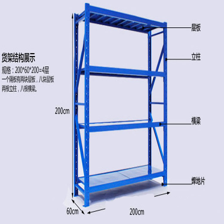 (1)仓库货架是一种架式结构物,可充分利用仓库空间,提高库容利用率,扩大仓库储存能力。
