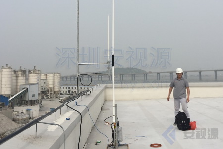 将天线通过U形夹码抱杆固定在楼顶,通过馈线线缆连接到室内