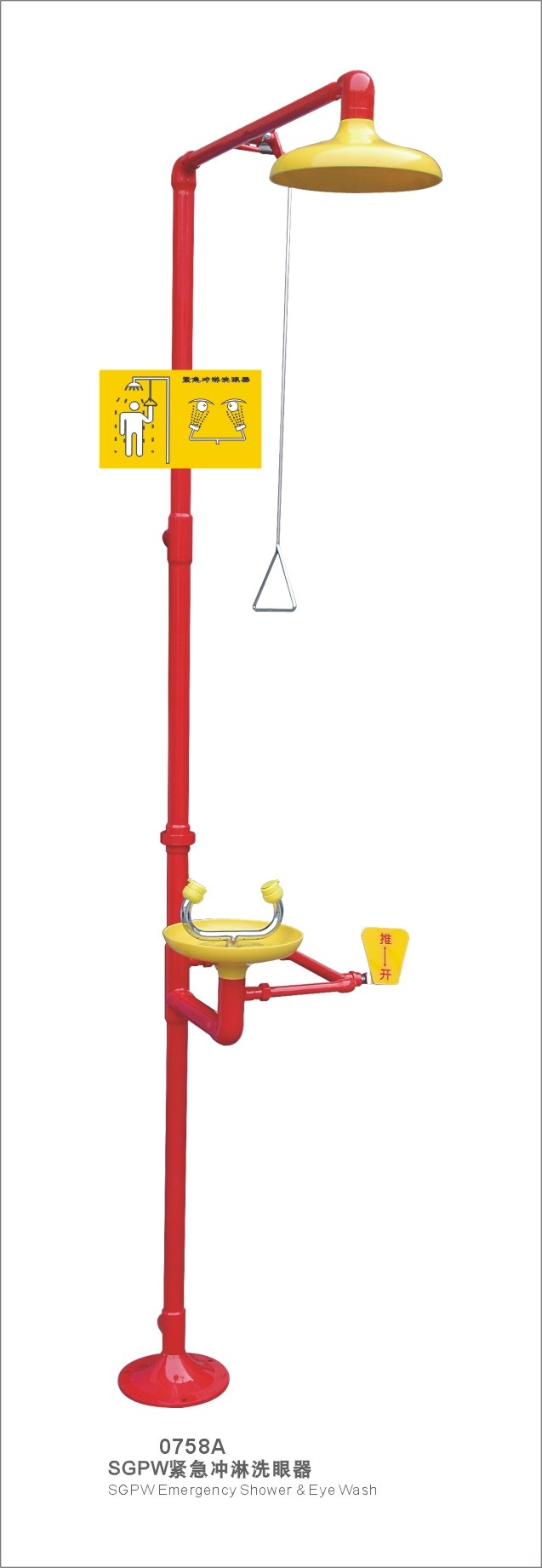喷头:冲淋喷头直径为250mm的ABS工程塑料,可提供最大流量80升/分钟(压力为0.6MPa)的出水流量。洗眼盆直径为250mm的ABS工程塑料。洗眼喷头内装起泡器,出水径缓压处理呈泡沫状水柱,防止充伤眼睛,外设防尘盖,使用时可自动被水冲开。
