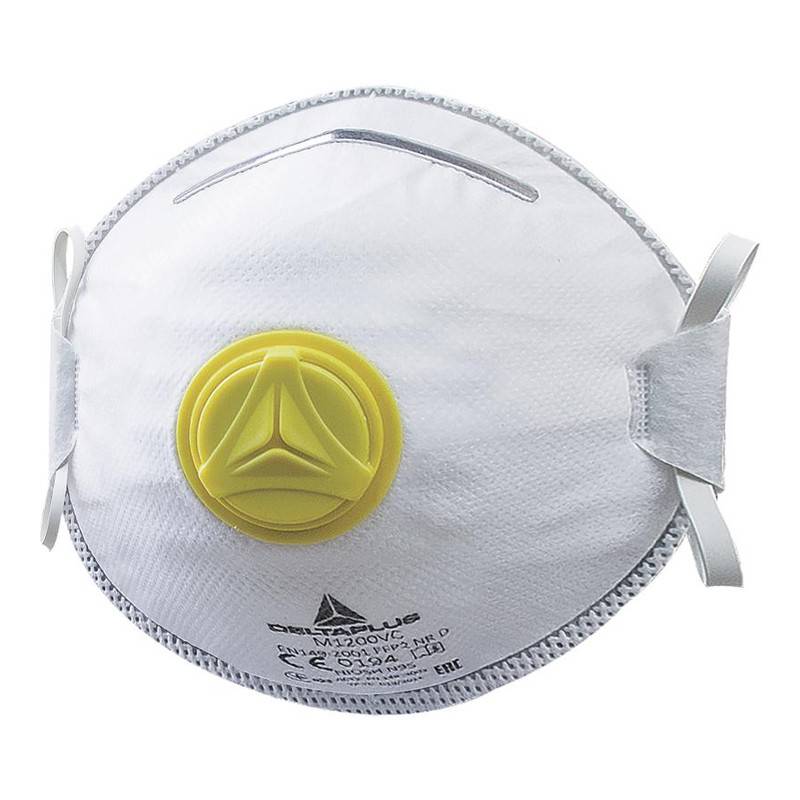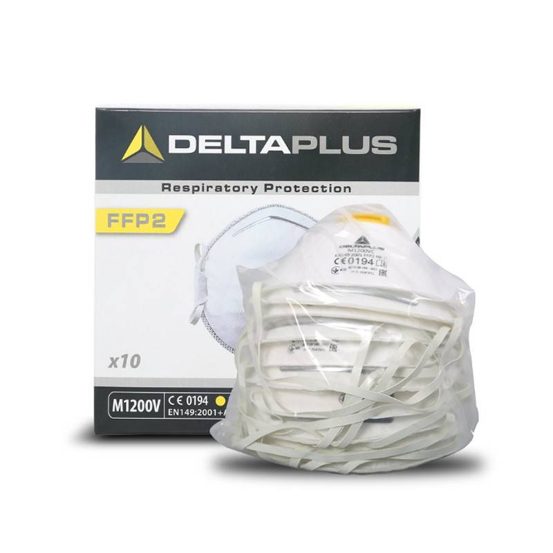代尔塔104006FFP2级自吸过滤式带阀防尘口罩采用无纺布合成纤维,配有黄色呼气阀,过滤吸收等级FFP2。每盒10只装。M1200VS为小尺码款;M1200V为大尺码款;M1200VW为活性炭款。