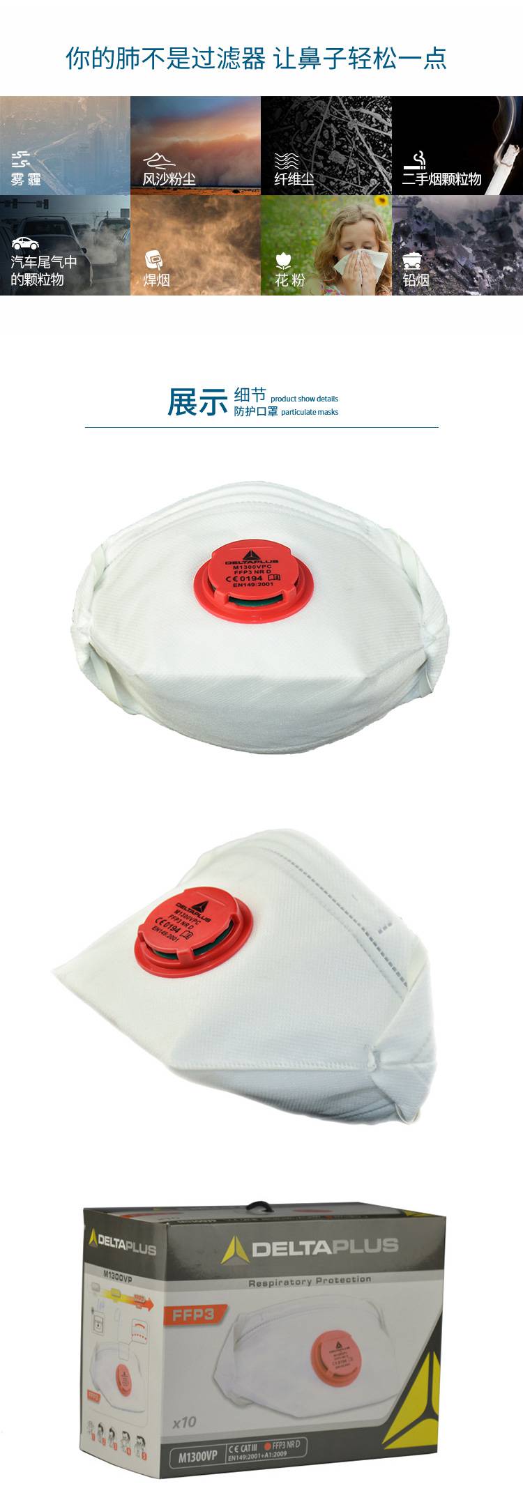 产品名称;代尔塔104106头戴折叠式带呼吸阀FFP3防尘口罩