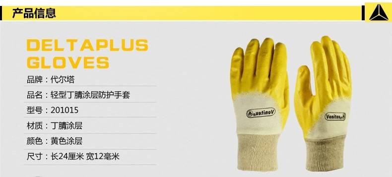 产品名称;代尔塔 201015 丁腈涂层耐油耐磨耐酸碱透气灵巧舒适防护手套