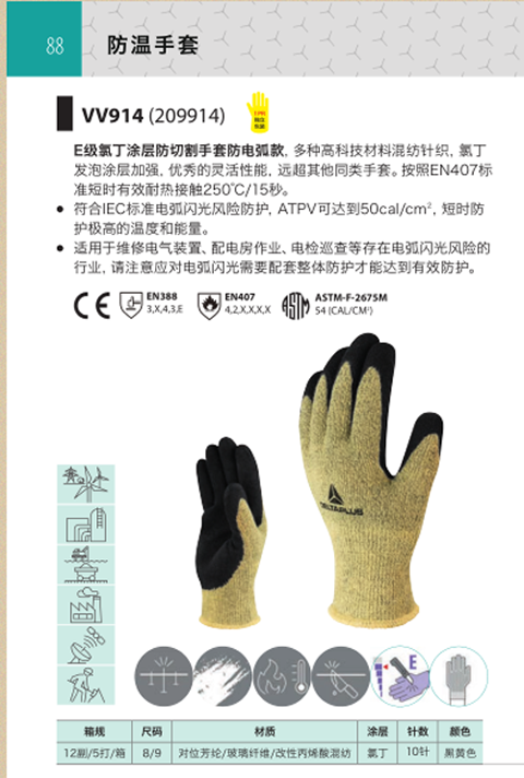 产品名称;代尔塔209914氯丁涂层防切割防电弧防护手套