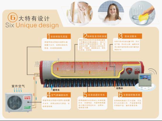公司坐落于“全国文明城市”、“岭南明郡”----惠州市,主要经营空气能热水器、太阳能热水器、太空能热水器,是集技术研发、生产、销售、工程设计及施工为一体的大型高科技企业。产品广泛应用与家庭、学校、宾馆、酒店、医院、工厂等场所。