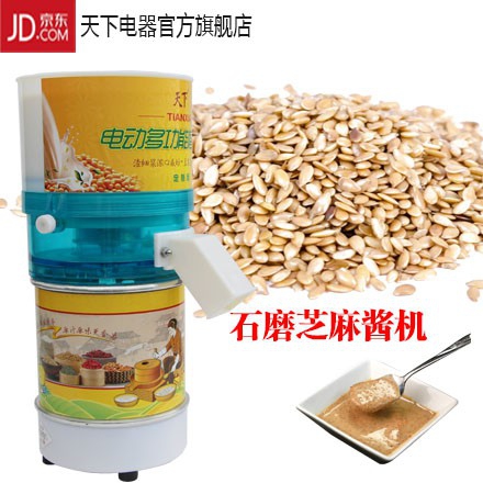 电动磨芝麻酱机器是利用电机所提供的能量当作动力来源,促使上下两个磨盘在一静一动的相互摩擦过程中碾碎芝麻,把芝麻粒变成芝麻酱的现代科技产品。虽然出酱速度很快但它的售价普遍偏高,一千两千甚至四五千的都有,且只有专业做芝麻酱的工厂或者大饭店大作坊才适用。而与现今市场上泛滥的大型机器不同的是,天下电动芝麻酱机在外形、技术和售价上都甩了其它产品好几条街,堪称性价比之王。第一,外形上,它精致大气,时尚美观。16*36cm的小巧机身赋予了它更加灵动的特点;第二,技术上,多项国家实用新型专利和外观设计专利包揽其身,引领芝麻酱机行业潮流;第三,售价上,多个系列的多款产品,售价均不过千元,走最亲民的路线,不管是自己用,还是送亲朋送好友都是良品佳选。另外,该产品的陶瓷工艺仿古石磨磨盘,更了芝麻酱口感香郁,味道醇浓。