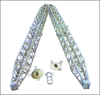 1、支起铝合金2棵抱杆(角度可根据施工现场而定)