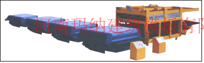 该机无需模具(板),只需场地.采用新工艺、新技术,从上料、铺布、复合、复压到切割一机完成,自动化程度高,运行平稳,规格任意调整。产品表面平整、光滑、密实度高,真正实现新型建筑墙体板材的工业化流水线生产。大大降低了生产工人的劳动强度。彻底改变了以往的立模、平模浇注成型的诸多弊端。如:需大量使用模具(板),需电加热或蒸汽加热,产品种类单一,隔音、保温效果不能满足市场需求等诸多缺陷。一机多用,既可以根据需要生产各种长度和厚度的各种规格墙板轻质保温复合墙板、水泥聚苯颗粒复合墙板、菱镁聚苯颗粒复合墙板,还可以生产各种规格和厚度加强防火板。轻质保温复合墙体板设备,实行技术、设备、上门安装调试一条龙服务,保证生产出合格产品。适用范围广有孔构件、无孔构件、布网构件、非布网构件均可生产。