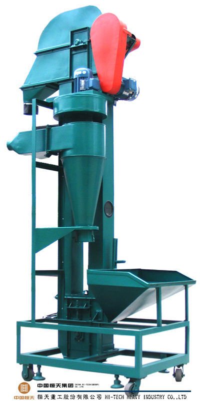 斗式提升机资料:料斗把物料从下面的储藏中舀起,随着输送带或链提升到顶部,绕过顶轮后向下翻转,斗式提升机将物料倾入接受槽内。带传动的斗式提升机的传动带一般采用橡胶带,装在下或上面的传动滚筒和上下面的改向滚筒上。链传动的斗式提升机一般装有两条平行的传动链,上或下面有一对传动链轮,下或上面是一对改向链轮。斗式提升机一般都装有机壳,以防止提升过程中挥洒飞扬物料。