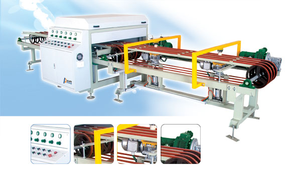 本系列产品适用于将大规格墙地砖分割成所需的条形砖、方形砖、菱形砖等、加工尺寸25-600 (800) mm,可以一次分割不同宽度的砖块,也可以先预切后切断。此工序可令产量更加大,无破损。