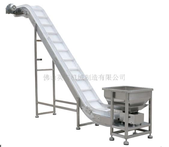 YXD-3500大倾角输送机主要用于颗粒状散装物料的提升输送。比如薯片,花生,糖果,干果,冷冻食品,蔬菜,化学药品等颗粒状或块状物品。接触物料的括板带是由模块式链板拼装而成,带长带宽可自由灵活拼组,材质为食品级聚丙烯(PP)料,外型美观,不易变形,能耐高低温。大倾角输送机可以同其它配套设备组成连续或间歇式自动化称重、包装生产线,而且维护简单、拆装容易、清洗方便。非标型尺寸可根据客户要求定做。