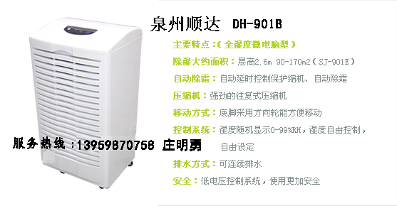 泉州顺达电器有限公司是抽湿机生产厂家。主打产品为工业抽湿机,抽湿器,除湿器,去湿机等空气除湿设备。目前,顺达抽湿机设备已广泛用于家庭,办公室、档案、资料、图书馆、电脑房、精密仪器室、医院及贵重物品仓库,化纤、制药、军工、玻璃、食品、电子、冶金、印刷、仓库、地下室、档案室、电力、电信、卷烟、医药、印刷、茶叶、纺织等对湿度有要求的场所。