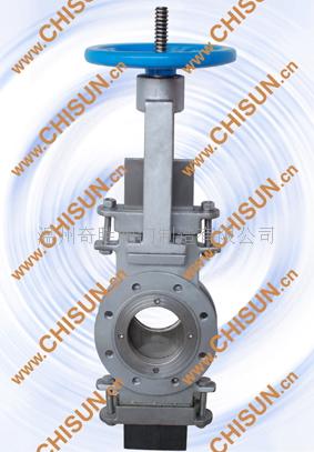 又称手动插板阀,它是一种闸板与阀座始终紧密接触密封的阀门,其原理是闸板上开有一个通径大小的圆口,通过闸板启闭使得闸板上圆口跟通径做完全脱离和相吻合的动作。此阀门的优点在于阀体通径无凹槽,介质不会卡阻堵塞,并且具有全通径流通特性,适合粉体颗粒介质的管道中使用。其密封结构可以分软密封、硬密封结构。穿透式刀闸阀是具有精密构造,工艺性好,结构紧凑等特点,密封阀座为活动结构设计,有防磨损和自动补偿功能,因而寿命更长。在关闭和开启过程中阀座跟闸板一直紧贴运动,使得阀门启闭力稳定,并且具有切断介质等特点。配置手轮可以很直接操作手轮来启闭阀门。