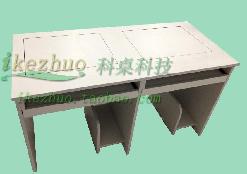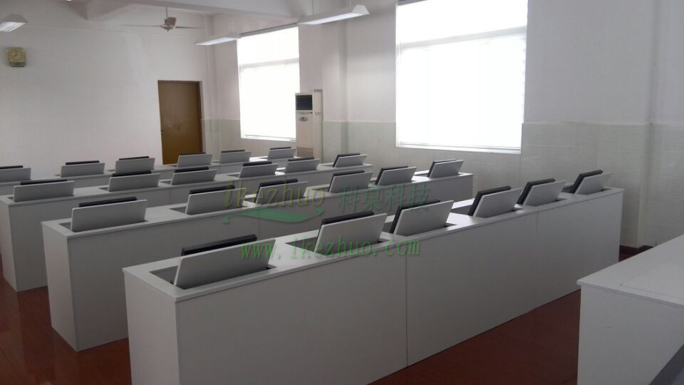 科桌 翻转电脑桌主要应用于各种大型会议室,学术报告厅,计算机教室,多媒体教室、多媒体会议室、多媒体电子教室、多媒体电教室、机房、培训中心,展厅内及多功能会议厅等。普通教室与计算机教室模式相互切换快速,不阻碍老师与学生之间目光交流,当需要使用显示器时轻按前端桌面板隐藏在桌子内部的显示器会自动从桌子下面升到桌面翻转到合适角度。当不使用显示器时,可手动按下显示器翻盖面板至桌面平整,显示器自动锁住隐藏在桌子内与桌面保持平整一致。起到防尘,防盗,保持桌面平整美观。使用方便,手动控制,翻转自如。