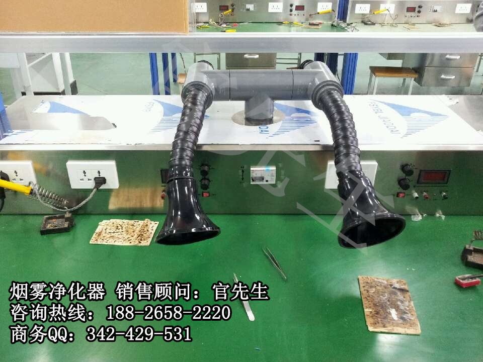 针对烙铁焊锡、锡炉浸锡、激光打标、激光医疗、化学实验等场合所产生烟雾、少量粉尘、异味、有毒有害气体进行净化过滤,操作简单,节能环保。比如锡焊工作中使用的材料不同、添加物不同、焊接温度不同,都会产生不同的有毒有害气体。该 激光打标烟雾处理设备是保护操作者健康的理想产品。