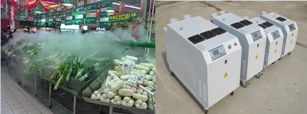 机器水箱采用不锈钢材质,无水锈,不会腐烂,使用寿命长。内部采用集成式雾化组件,并配有无水保护装置,所产生的雾粒直径为1-10μm,雾化工作时无机械驱动、无噪音干扰、无污染,雾化效率高、故障率低、能耗低,是高效、可靠、其完全雾化的设计无水滴。