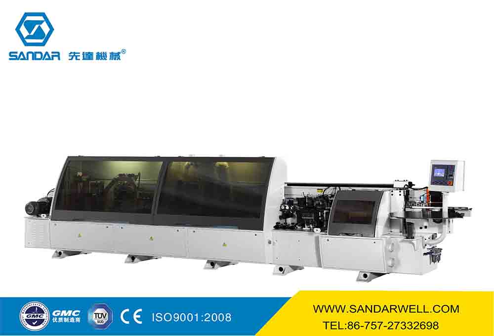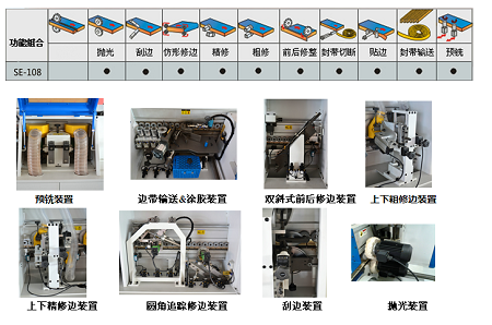 轻触式电脑显示屏控制\输送带三速马达\自动涂胶装置\气压式封边带压轮组\压梁电动升降电机\独立高频控制