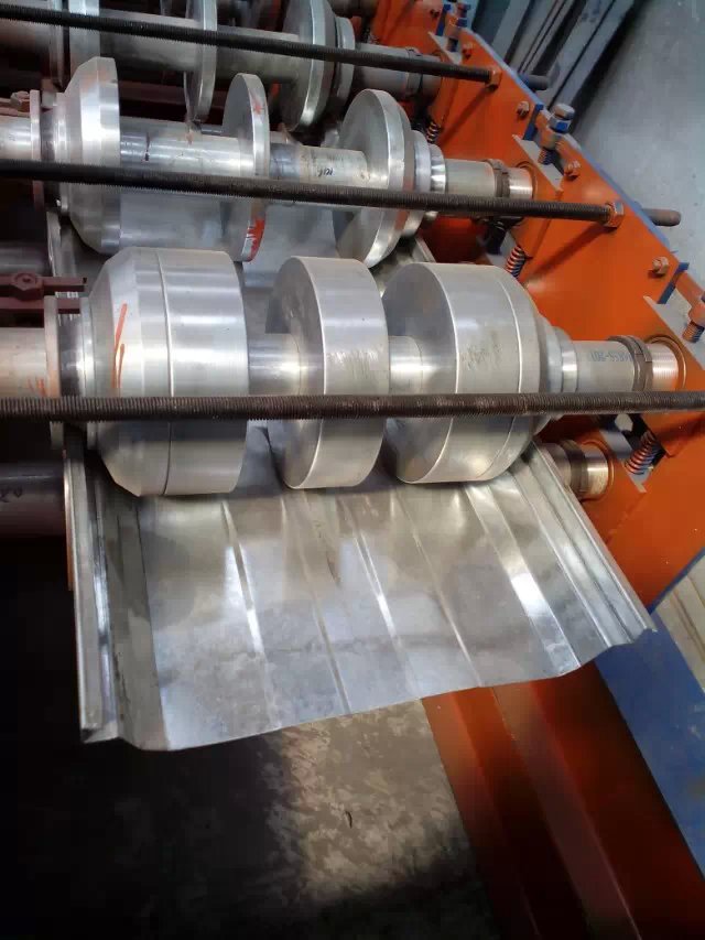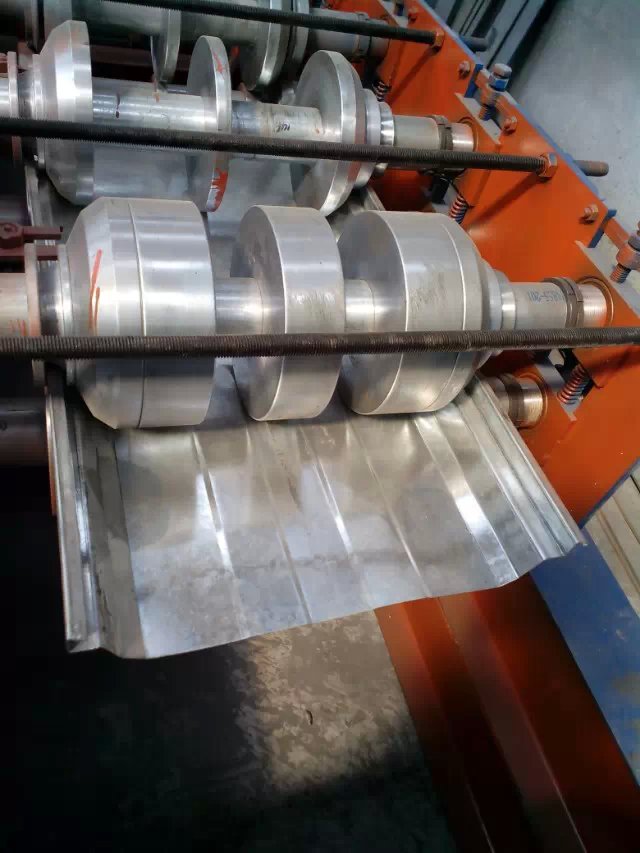 角驰设备也是到屋顶瓦的专用设备,角驰Ⅲ820型 河北盛誉压瓦机系列成型机生产的压型板解决了常规系列压型板的屋面渗漏问题,压型板的连接打破了传统屋面用螺栓连接的惯例,安装方法采用45度锁口咬合安装,使屋面防水效果更加完好。 经该机辊轧成型的压型板属咬口屋面板,具有波峰高、强度大、无螺钉锁边咬口安装,搭接安装安
