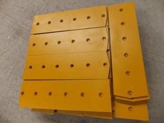 山推推土机角铲包括:刀头、刀片、刀角等主要部分,以及螺栓、螺母、连接头、销轴、销等、其中刀角刀片为易损件,一般的工作环境可以使用1-2年,刀角分为做到左刀角和右刀角,刀片按孔分有包括:3孔、5孔、6孔、7孔、8孔、9孔、11孔,重量一般在10-50KG。材质包括45#钢,30MnB.