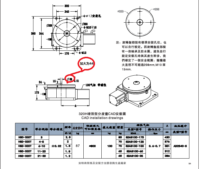 5、保养环节:分度盘周期为1个月保养一次,保养时从分度盘标明注油口注入(半流体润滑脂注油30毫升)也可指定厂家标配。