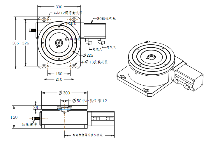 此款精密型气动分度盘,内置通孔,采用进口轴承