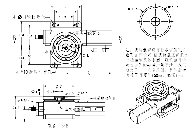 5、保养环节:分度盘周期为1个月保养一次,保养时从分度盘标明注油口注入(半流体润滑脂注油30毫升)也可指定厂家标配