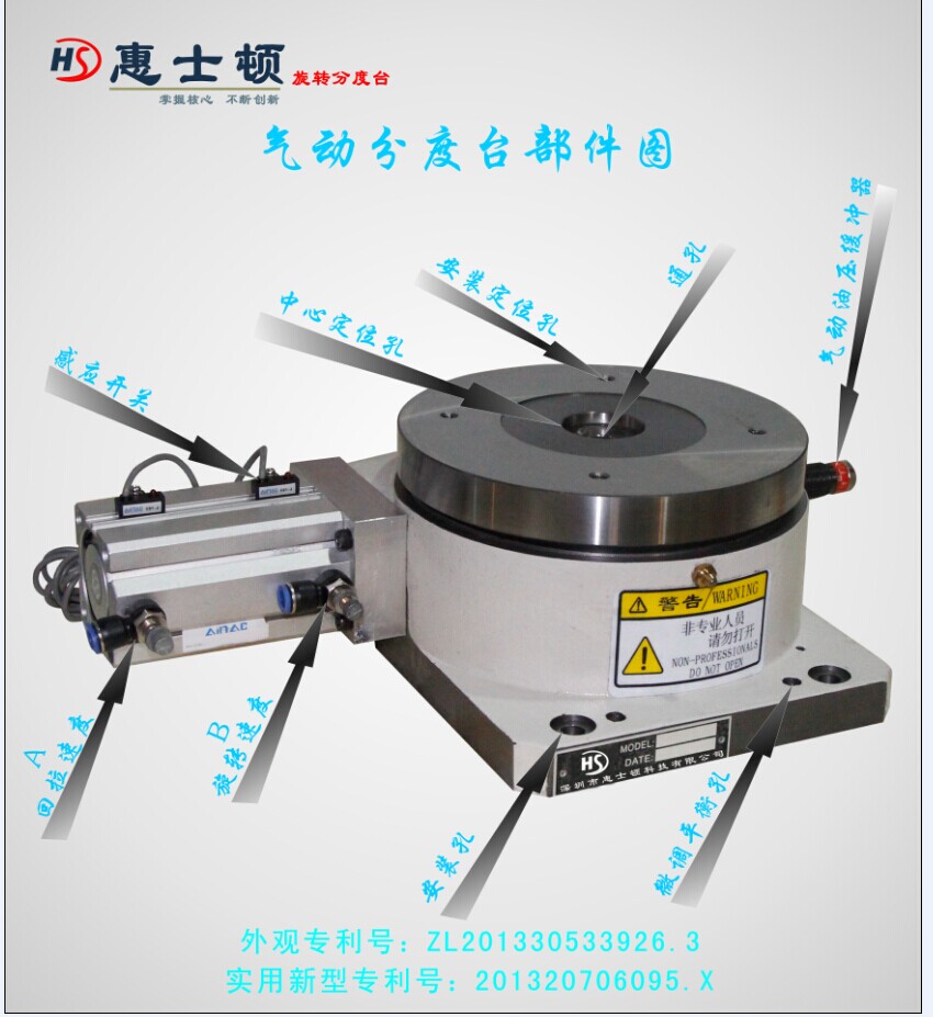 精密200型的气动分度台,高精度气动旋转台 旋转分度台配有液压缓冲器,通过挡块可以调节缓冲特性!可以在前侧进行调节。