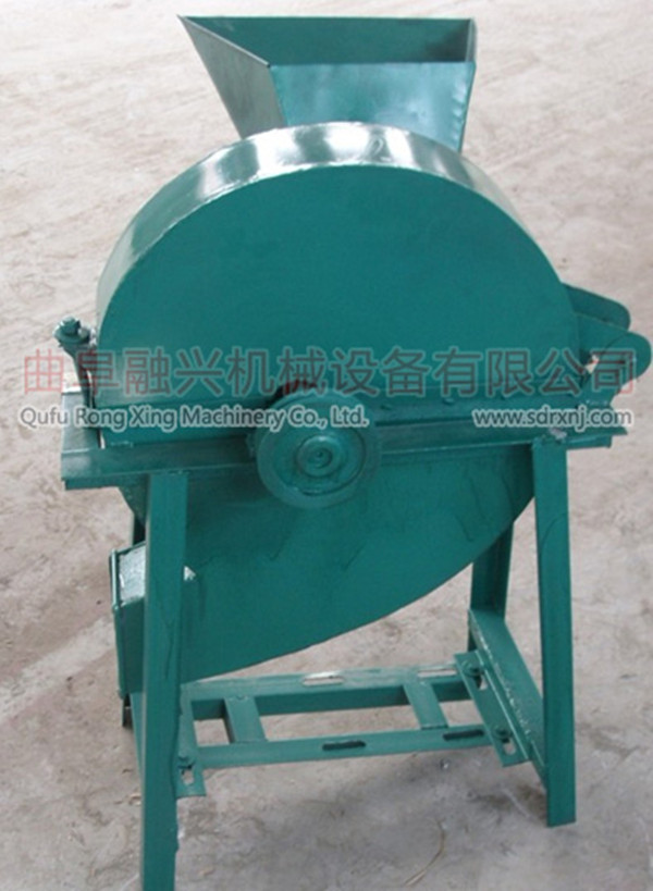 物料由人工放至喂入口处,在高速旋转锤片的抓取以及气流的作用下进入工作室。被锤片、齿板的相对运动揉搓成散碎状,经风扇抛出机体外。